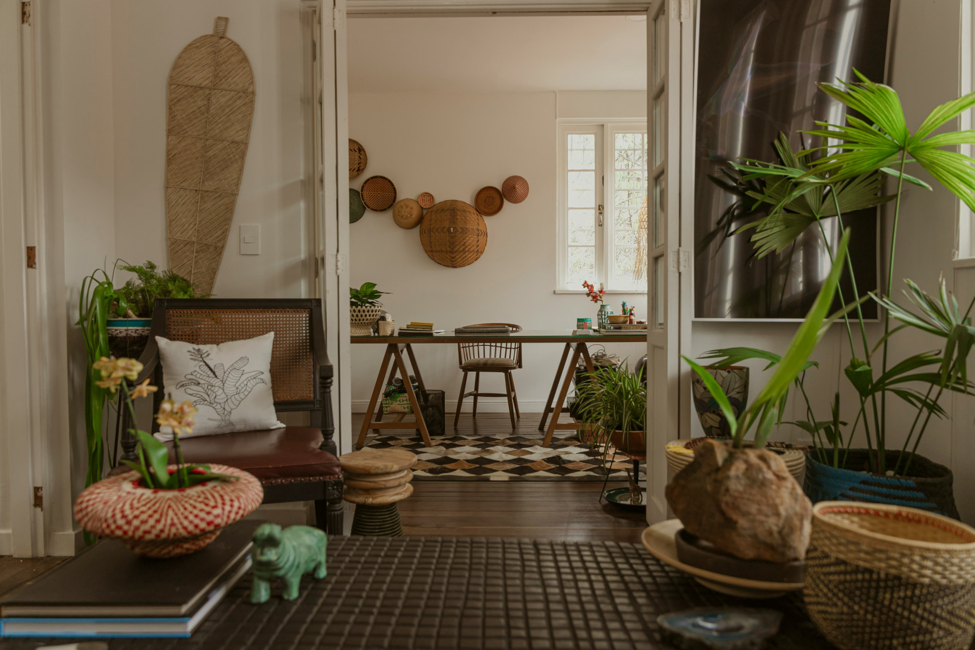 Ryhmittele kasveja eri korkeuksille ja käytä luonnonmateriaaleista tehtyjä ruukkuja, kuten savea tai rottinkia, jotta kokonaisuus pysyy harmonisena.